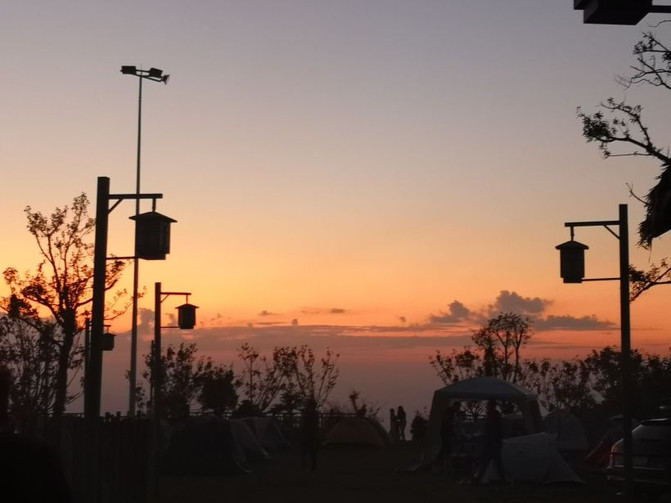 Después de acampar en la montaña Anding Fuyang, también es la puesta de sol más hermosa para la puesta de sol en el mar