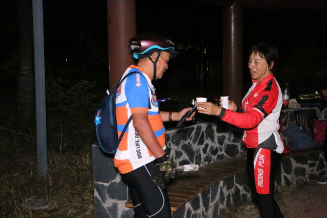 A: venir a la montaña Anding en Fuyang antes de tiempo para esperar la llegada de los ciclistas