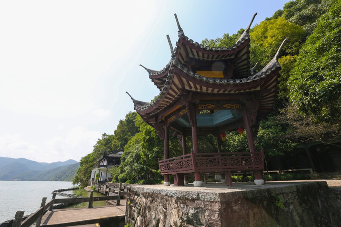 El este y el oeste de Diaotai son un diseño abierto, que mantiene su apariencia original, y los pequeños socios que visitan no deben cruzar la línea de seguridad. Aquí, puede contemplar las continuas ondas de la montaña Fuchun y escuchar el flujo del río Fuchun. Según los registros, el este y el oeste de Diaotai tienen sus propias historias diferentes, el este es Yan Ziling Diaotai, el oeste es Xie Sutai.