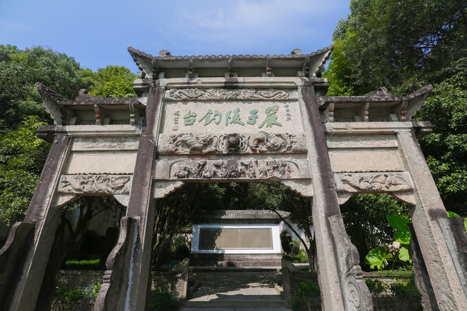 La tumba de Yan Zi es una de las reliquias antiguas de la dinastía Han Oriental. Y se hizo famoso porque Yan Guang, un erudito de la dinastía Han Oriental, rechazó la llamada del Emperador Guangwu Liu Xiu y rechazó el puesto oficial de "Doctor de la Conferencia de Arquivos", y vino a este lugar para vivir en solitario y pescar. El lugar escénico se encuentra a 15 kilómetros al sur de la montaña Fuchun en el condado de Luoxian, provincia de Zhejiang. Se compone de Dongtai, Xitai, el Templo del Sr. Yan, Shifang, Beiyuan y las Tres Gargantas del río Fuchun.
