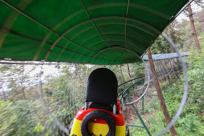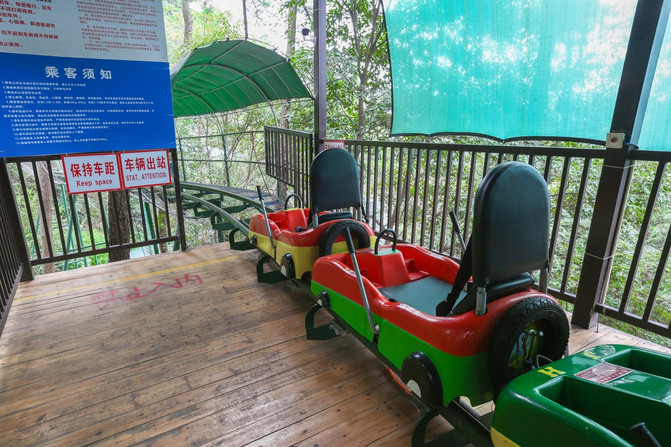 Experimentó la comodidad de la montaña Daqi, pero también sentir la pasión de la velocidad de la montaña Daqi, el trolley "Ratón voladora en el bosque" puede controlar la velocidad del trolley de acuerdo con sus preferencias, cruzar la selva, sonreír.