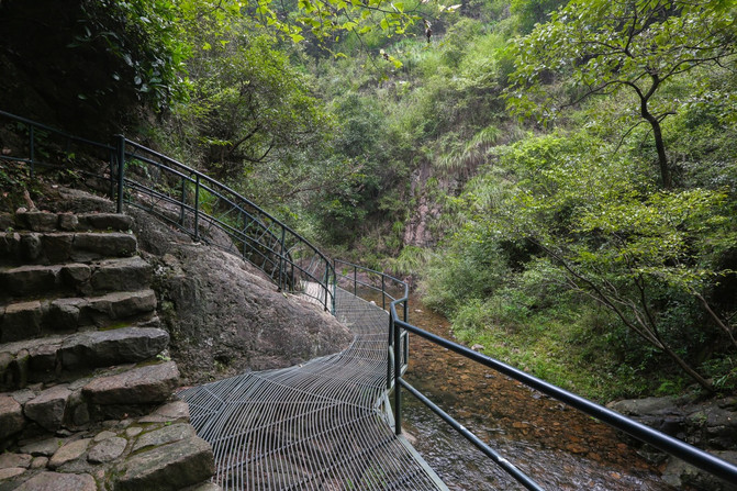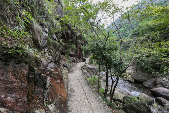 Toda la ruta de Daqi Mountain tarda alrededor de dos horas. El sendero de montaña a veces es sinuoso, a veces gira, y la esquina es de repente alegre. Se puede escuchar el sonido de la cascada de lejos y cerca, resonando en el valle.