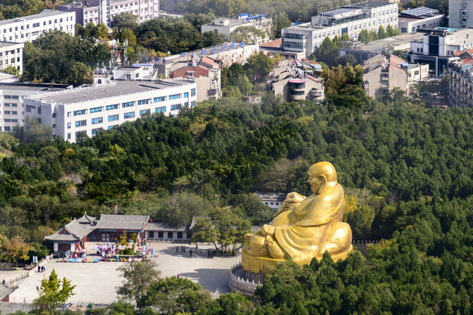 Buda reclinado: Este Buda reclinado se estableció en la montaña Qianfo en diciembre de 1996, ubicado en la intersección de la carretera principal de Shangshan Pan y la carretera de la cueva Wanfo. Es una estatua de granito de 10 metros de largo y 50 toneladas de peso del Buda Shakyamuni, acostado lateralmente de este a oeste, con la cabeza orientada hacia el este y el norte, con la mano derecha debajo de la cabeza, vestido con un abrigo abierto, mejillas llenas, dos anchos, cabello de caracol en la cabeza, orejas abiertas, cejas delgadas, ojos ligeramente abiertos, adornos de pecho que simbolizan la auspiciosa palabra "Yun Wan", que da a las personas una sensación benigna.&& Los amigos que creen en el Buda pueden hacer reverencias para orar por la bendición del Buddha.