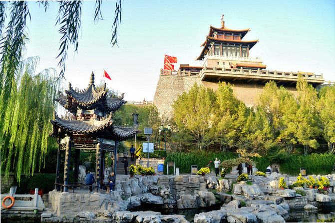 Según los registros de la literatura local de Jinan, el Templo de Jinshan se encuentra originalmente en la roca del foso, originalmente llamado "Tres Huangshan", "Sanyuanhan", construido en el Yuan Ming, con más de una persona de alto. Debido a que cada año en la temporada de lluvias, el agua del foso se eleva y se inunda varias veces por el río, hay un significado de "agua inunda Jinshan", por lo que la gente común lo llama "pequeño templo de Jinshan", que fue destruido en la batalla de liberación de Jinan en 1948.