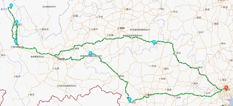 8: 00 Guangzhou - 17: 00 Chongzuo 800 km, viaje estimado de 9 horas