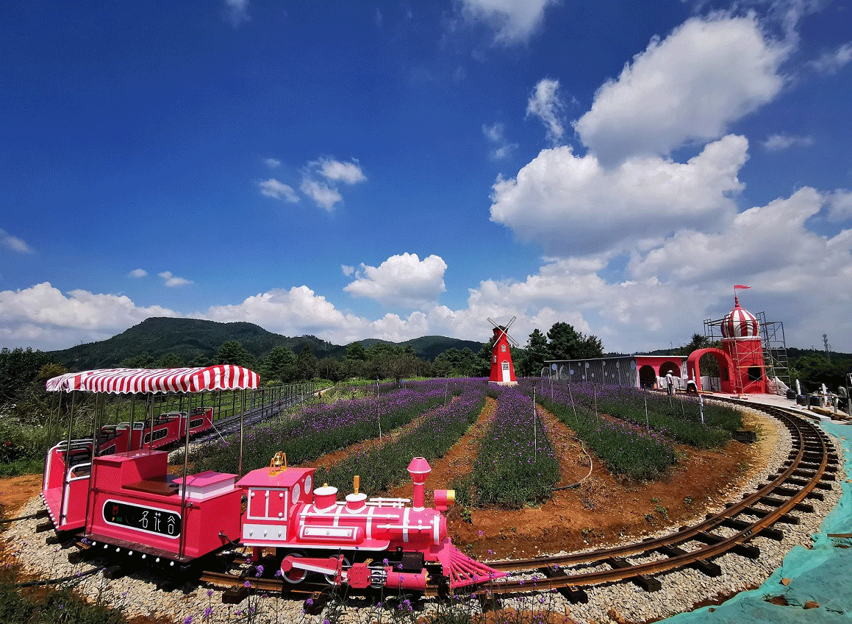 El lugar escénico también ha construido muchos hermosos puntos de tarjeta de fotos de celebridades en línea, molinos de viento, pequeños pabellones y pequeños trenes rosados, que son taquilleros con un disparo casual.
