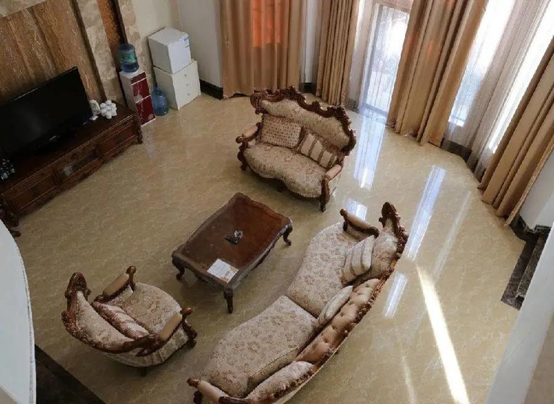 La villa es de estilo arquitectónico europeo español, y la decoración interior y los muebles también son de estilo europeo fresco dominado por el blanco y el rojo.