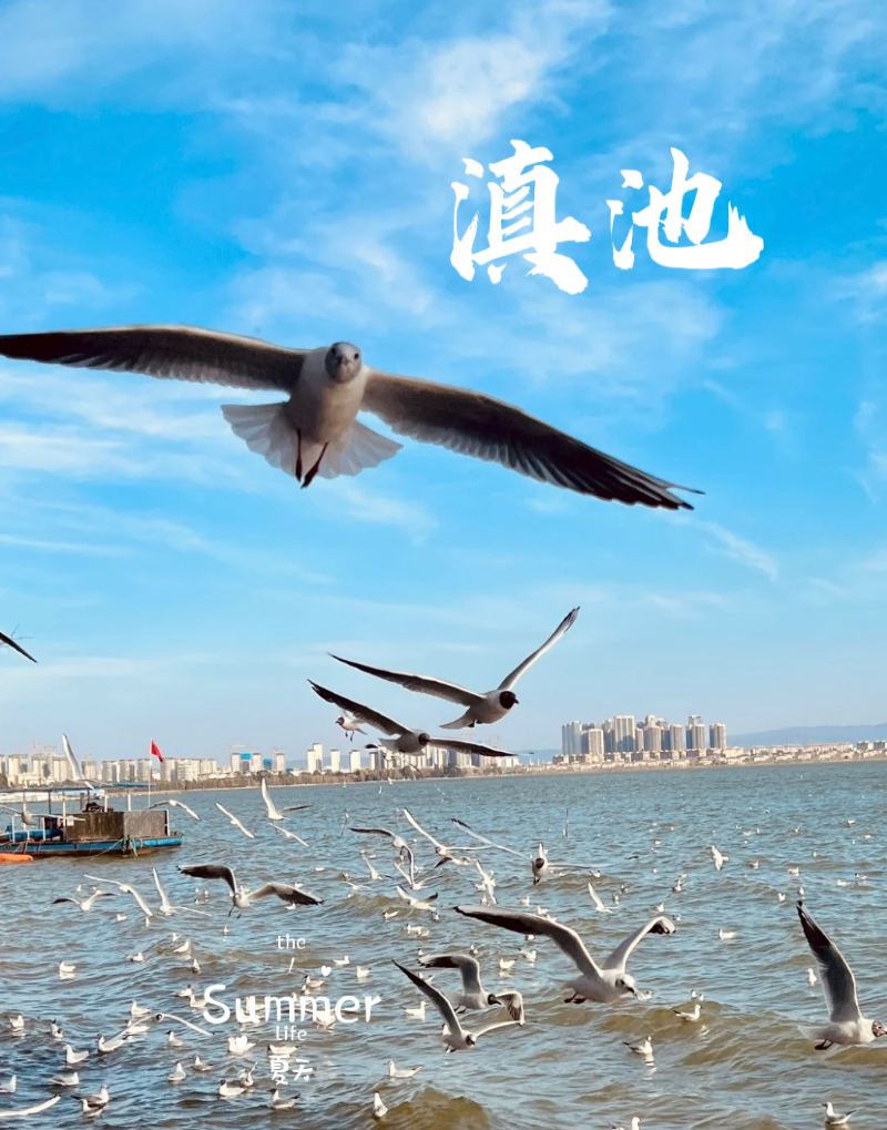 Excelente ubicación para ver gaviotas, con el lago Dianchi y las montañas occidentales como telón de fondo