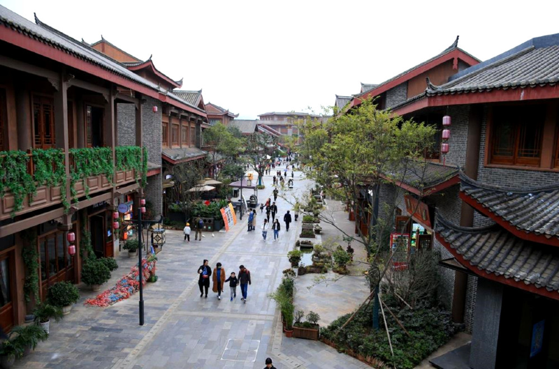 A través de la plaza, camine por el puente arqueado de madera, admire las diferentes tiendas en el bloque y pasee por los objetos artesanales tradicionales como Miao Yin, tallas de madera, caña y bambú, té asado y otros objetos.