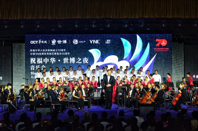 En la noche del 13 de octubre, el grupo de turismo de la Expo de Yunnan de la ciudad de ultramarinos celebró un concierto "Blessing China · Expo Night" en el Parque de la Expo de Kunming para celebrar el 70 aniversario de la fundación de la República Popular de China y el 20 aniversario de la Exposición Mundial de Horticultura de Kunming '99.