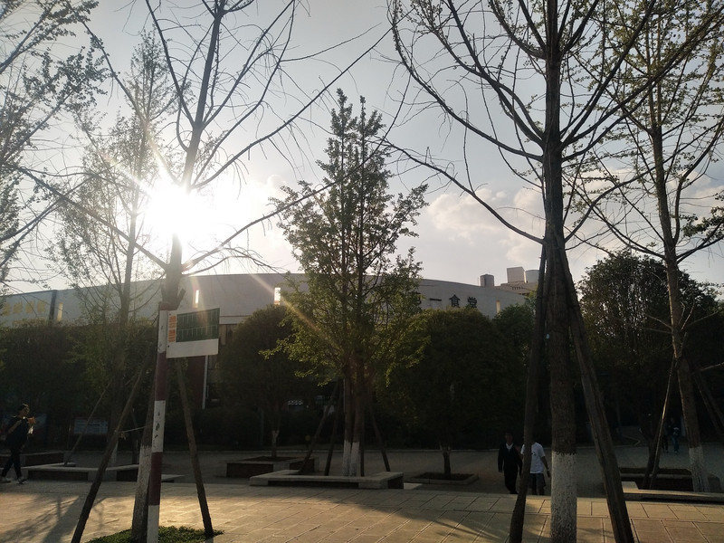 A ambos lados de la carretera, donde se encuentra la plataforma, hay dos filas de árboles de ginkgo que no son altos en la actualidad. Hoy en día, todavía crecen pequeñas hojas tiernas verdes, y en otoño y invierno, se pueden cosechar árboles dorados "pequeños ventiladores". La ubicación de la plataforma es muy buena, a ambos lados de la universidad médica de Kunming es una cantina y un salón de estudiantes, por lo que todos los días puede disfrutar del aroma de la comida de la cantina "bautismo", y su justo al norte es el lago espejo y la biblioteca de la escuela, así como los dos cisnes negros que se acostan en el lago espejo.