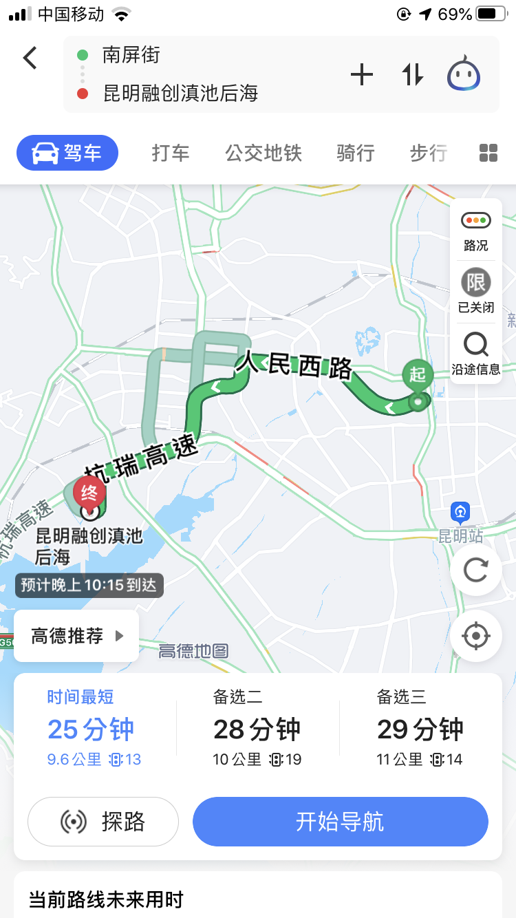 10: 00: Debido a que el hotel está cerca de la calle Nanping, el transporte público para llegar al destino tiene que cambiar dos veces, así que decidí tomar un taxi y finalmente gasté 23 yuanes. Consejos de transporte: Se recomienda que todos tomen un taxi a "Kunming Dianchi Rongchuang Houhai", ¡el tiempo es corto y el precio es barato!