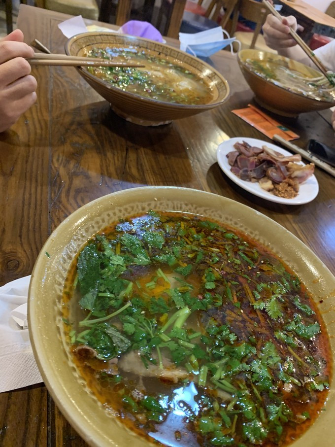 El propietario recomendó la carne de res enchufe de cobre al mediodía y casi estaba lleno al mediodía (este restaurante está en el pueblo y no se puede encontrar cerca). Pedí carne fresca en marinado y miscelánea de res, verduras auto-selectadas, rábano en el fondo de la sopa ácida es muy apetitoso. También encontró la primera bebida local de Yunnan.