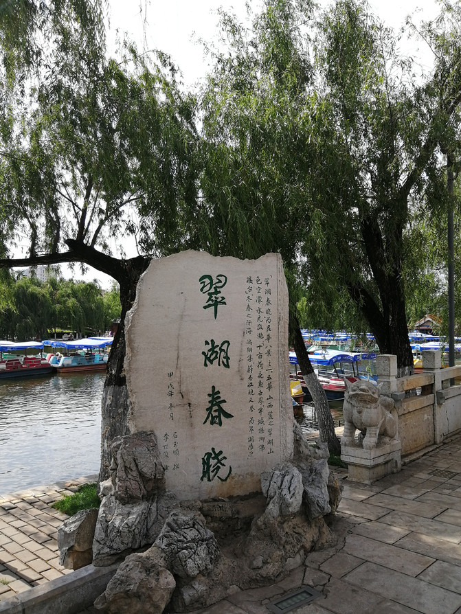 El agua azul, el sauce colgante, los pabellones exquisitos crean el encanto único del lago Cuihu. ¡Caminando por él, se olvida de regresar, es digno de una espléndida esmeralda incrustada en la ciudad de Kunming!