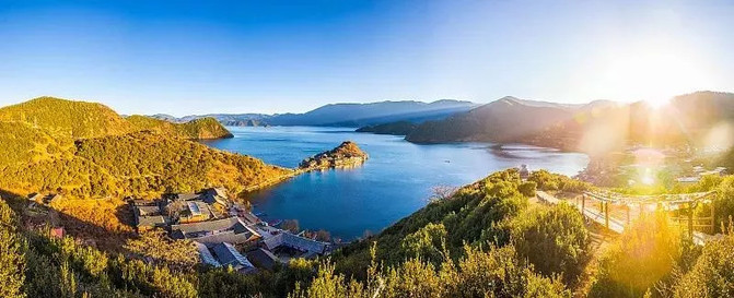 D2: Levántate temprano para ver el amanecer del lago Luanglu → desayuno → paseo en bote por el lago (la isla de Liwubi) → plataforma de observación de Riga → mar de hierba → caminando por el puente del matrimonio → almuerzo → Ningxia → regreso a Lijiang