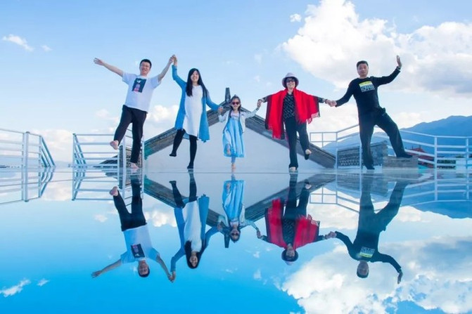 Después de un hermoso almuerzo en Dali, tomamos un coche al pie de la montaña de nieve del dragón de jade, el punto escénico nacional 5A, tomamos el teleférico del glaciar, disfrutamos de los pastizales y bosques en capas distintas, escalamos la montaña de nieve, que se extiende por decenas de millas, como un dragón plateado haciendo un baile de vuelo eterno bajo el telón de fondo del cielo azul. Después de despedirse de la montaña de la nacionalidad Naxi, el guía nos llevó a encontrarnos con el valle de la luna azul de Lijiang Xiaojiuzhai. El color del agua es azul deslumbrante, y el valle tiene forma de media luna, que parece una luna azul incrustada al pie de la montaña de nieve del dragón de jade. De pie en la orilla del lago, mirando a su alrededor, nubes blancas, flotando en las montañas, reflejos flotantes, como un sueño.