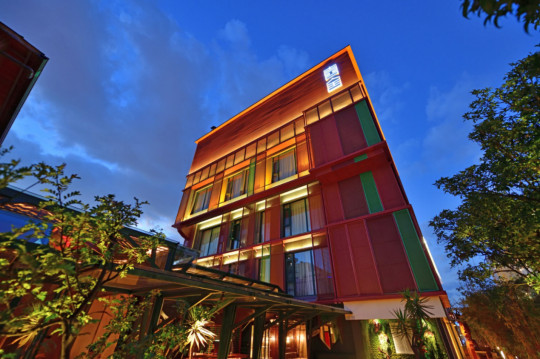 El hotel es un pequeño edificio independiente con un aspecto rojo y verde muy deslumbrante, ¡súper perfecto para tomar fotos! El quinto piso es un famoso área de tarjetas perforadas, la terraza en el jardín es muy cómoda para tomar el té de la tarde y tomar el sol, y también hay un bar abierto por la noche.