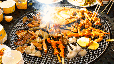 La barbacoa es un modo de autoservicio, los ingredientes son deliciosos, 20 + opciones de platos, ¡conveniente y rápido! Haga su propia comida y ropa, domine su propia sopa agria y dulce, la primera barbacoa en el otoño, la mansión roja ocupó.