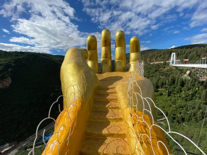 Ubicado en el punto de control de la zona escénica, una mano de Buda dorada se extiende desde el borde del acantilado, lo pondrá en el aire y en el aire alto, de pie en el "paisaje para ver el paisaje", un disparo fácil es hermoso.