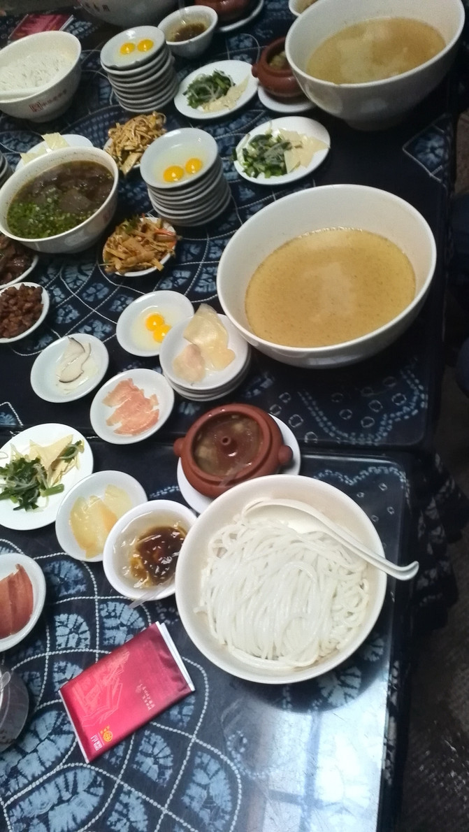 Después de la colocación, vamos a probar los fideos de arroz del puente de Yunnan. Hay muchos tipos de precios para los fideos de arroz del puente. La sopa inferior y los fideos de arroz son los mismos. La diferencia es la cantidad de ingredientes.
