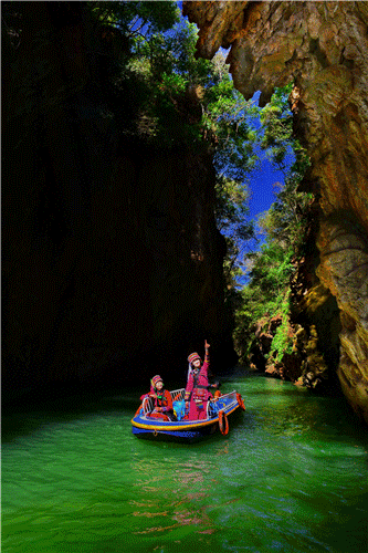 El espectáculo de la garganta de la cavidad de la cavidad es como un libro que nos cuenta la historia de los cambios geológicos de Jiuxiang, nos permite saber que su formación es el movimiento de la corteza causó el colapso de la parte superior de la cueva, el valle del río apareció en la superficie, la estalactita original que creció en la cueva también apareció en la superficie, luego crecieron estos árboles exuberantes, formando estos paisajes incomparables que vemos hoy.