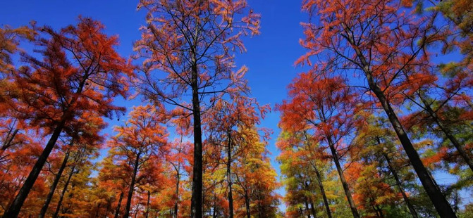 Entra en el lugar escénico de Qinglong Gorge y sube a lo largo del sendero hasta la cima de la montaña. El denso bosque entrelazado de varios árboles muestra un color diferente al de hace un mes, con rojo y verde mezclado en diferentes grados de amarillo.