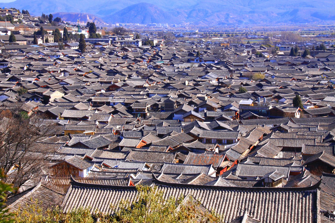 Yunnan-Lijiang - Ciudad antigua de Lijiang con vistas a la ciudad antigua
