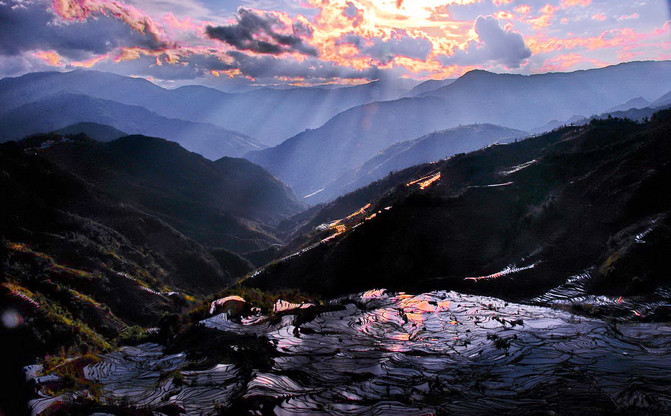 El campo de terrazas de Yuanyang, ubicado en el sur de la montaña Ailao en el condado de Yuanyang, provincia de Yunnan, es una obra maestra dejada por generaciones de personas de nacionalidad Hani. El campo de terrazas de Yuanyang es el núcleo del campo de terrazas de Hani en el río Honghe. La terraza de Hani en el río Rojo es una maravilla de la civilización agrícola en terrazas creada por el pueblo de todos los grupos étnicos dominados por la nacionalidad Hani con un clima geográfico especial.