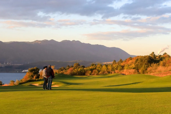 Los dos campos con vistas a la montaña y el lago del resort han ganado premios consecutivos de las principales revistas de golf y son considerados por los aficionados al golf como uno de los campos más desafiantes.。Incluso si no juegas, puedes jugar.Recorrido turístico por los 100 mejores estadios del mundo。A las 5: 30 p.m., tres personas toman un carro de golf, conducido por el personal para dar un paseo por el campo de golf y disfrutar del buen paisaje a lo largo del camino.