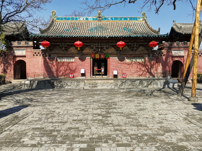 En 1988, el Templo de Zhenguo fue catalogado como una unidad nacional clave de protección de reliquias culturales, y en 1997, el Templo de Zhenguo y el Templo de Shuanglin fueron catalogados como Patrimonio Cultural Mundial como una parte importante de la antigua ciudad de Pingyao. El Palacio del Rey Celestial fue construido en la dinastía Yuan.