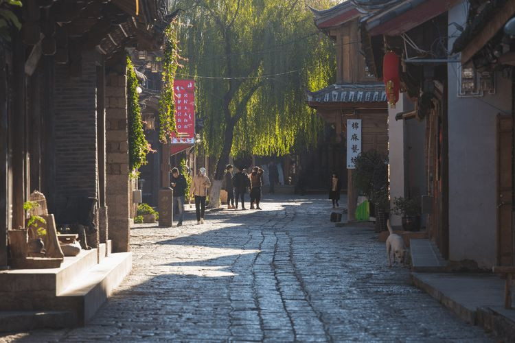 Cuando el primer rayo de sol de la mañana cae, camina lentamente a lo largo de las calles de pizarra azul de la antigua ciudad, sin destino, camina tan tranquila, parece como miles de años de Naxi, en esta vida relajada en la montaña, incluso si han pasado muchos años, como si todo no hubiera cambiado, este es el encanto de Shuhe.