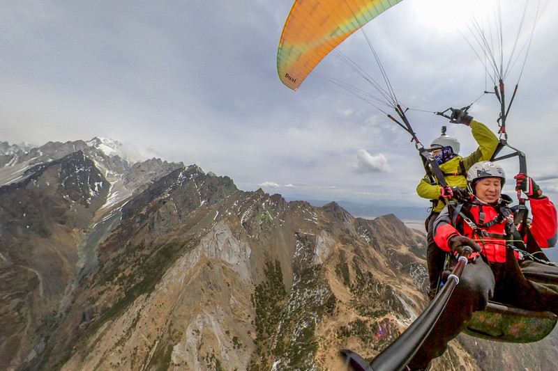 El segundo pico de la montaña de nieve Yulong, adyacente a la aldea de nieve del condado autónomo Naxi de Yulong, ciudad de Lijiang, provincia de Yunnan, el 23 de marzo, volamos sobre la montaña de nieve Yulong por primera vez con parapente sin motor.
