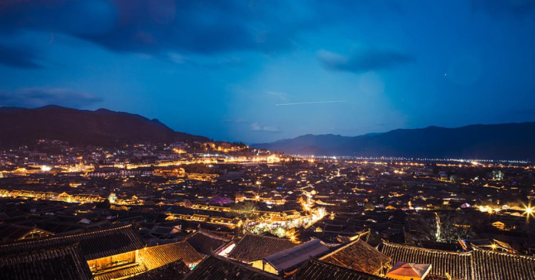 Fotogra la hermosa escena nocturna de Lijiang y vea la magnífica vista de la ciudad.