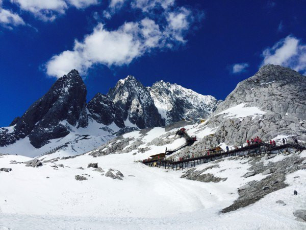 Yulong Snow Mountain está cubierto de nieve durante todo el año, por lo que incluso si se ve muy poca nieve cubierta debajo de la montaña, pero después de esperar a una gran plataforma a una altitud de alrededor de 3500, se puede ver la montaña completamente cubierta de nieve. Las personas tienen diferentes condiciones de reacción a la altura, por lo que es mejor tener un tanque de oxígeno al hacer el teleférico (para un papel preventivo, en lugar de usarlo cuando hay una reacción, entonces será tarde). Sólo usé el tanque de oxígeno durante el ascenso de 3500 a 4.680 altitudes. Debido a que todos son escalones, cuando sube los escalones, realmente apreció el significado de un pulgada difícil de caminar. Básicamente son 10 - 20 pasos para descansar, respirar oxígeno por un tiempo, lentamente, no respirará. Se recomienda no correr por las escaleras, subir demasiado rápido, de lo contrario, respirará demasiado, mantenga la fuerza, puede llegar a la cima.
