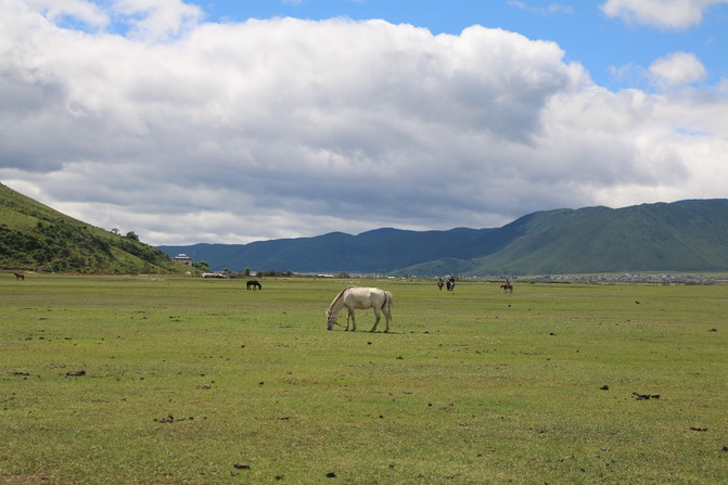 El último día no teníamos ningún itinerario, solo queríamos dar un paseo por Shangri-La lentamente y finalmente sentir la libertad de Shangri-La. Pero escuché que cerca del aeropuerto hay una estepa de Napaheira, que como su nombre, puede ser un mar o una estepa. Escucha a los lugareños que con el cambio de las estaciones y las diferentes precipitaciones, los lagos en la estepa de Napaheira son grandes y pequeños, un momento es el mar de Napa, un momento es la estepa de Ira.