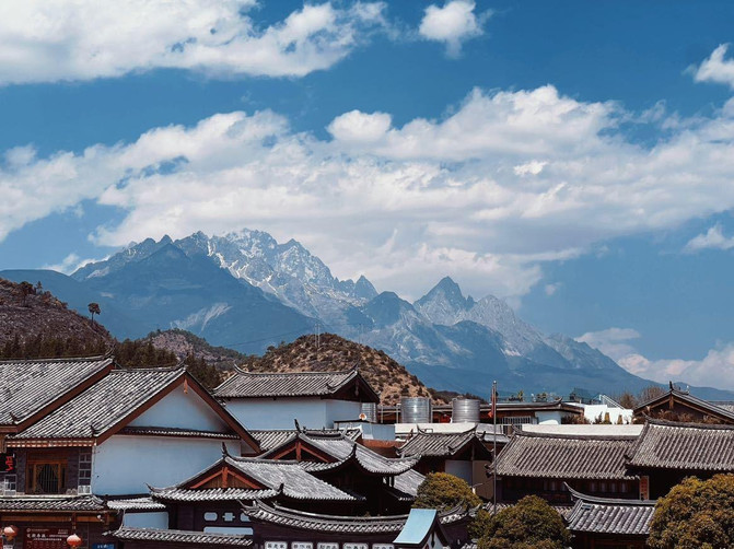 La antigua ciudad de Shuhe se encuentra al noroeste de la antigua ciudad de Lijiang. Huoshan es el remanente de la montaña de nieve del dragón de jade, las montañas son verdes, los bosques exuberantes, las casas de la ciudad están dispersadas, el puente de piedra, el palacio de Daxue se mantienen intactos.