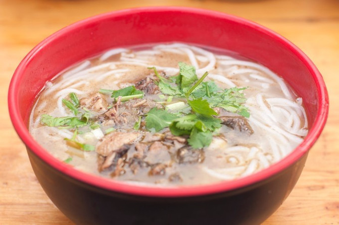 El fideo de arroz de pollo local de Yunnan (15 yuanes) es bastante fresco.