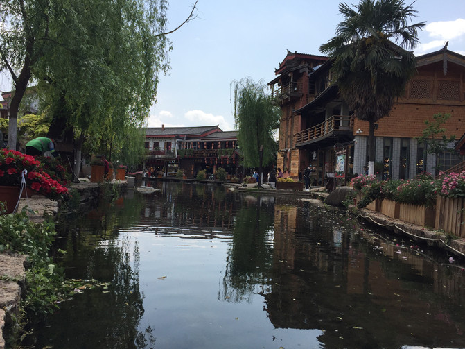Lijiang se apoya en las montañas al norte, con altos picos y aleros colgantes, mirando hacia abajo a los bosques planos, con pilas de humo, agua y tierra, lo suficiente como un refugio.