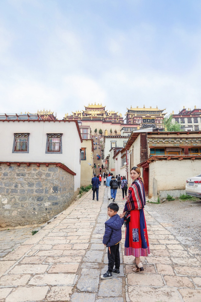 Subiendo desde el pie de la montaña, las capas de edificios del Templo de Songzanlin se muestran gradualmente frente a sus ojos. El espectacular templo está construido con los dos colores tradicionales del budismo tibetano, rojo y amarillo. Las esculturas en el techo, el tangka y la estatua de Buda en la sala, son solemnes y santas, al mismo tiempo que llevan la estética típica tibetana, traen un color místico.
