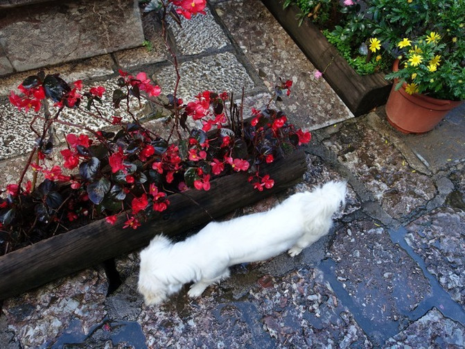 En la ciudad antigua, pasear, ver las flores, divertir a los perros, comer comida deliciosa, tomar fotos, beber, escuchar canciones y disfrutar de un tiempo de relajación!