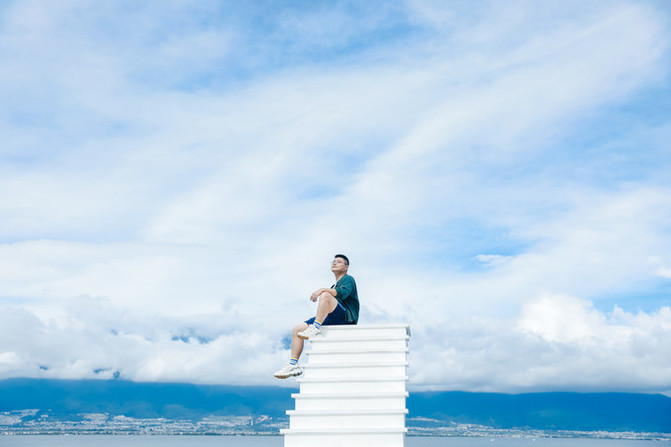 Sin embargo, fuera del campus, hay un lugar más sorprendente, o lo encontró especialmente en línea antes. Debido a que la Universidad de Dali está al pie de la montaña de Cangshan, el terreno es muy alto. Hay un camino directo al lago Erhai fuera del campus. No hay ningún obstáculo. De pie en lo alto, todavía se puede ver el lago Erhai en la distancia. Esta carretera está normalmente menos abierta al tráfico, así que un poco desenfrenado en el medio de la carretera para tomar fotos.