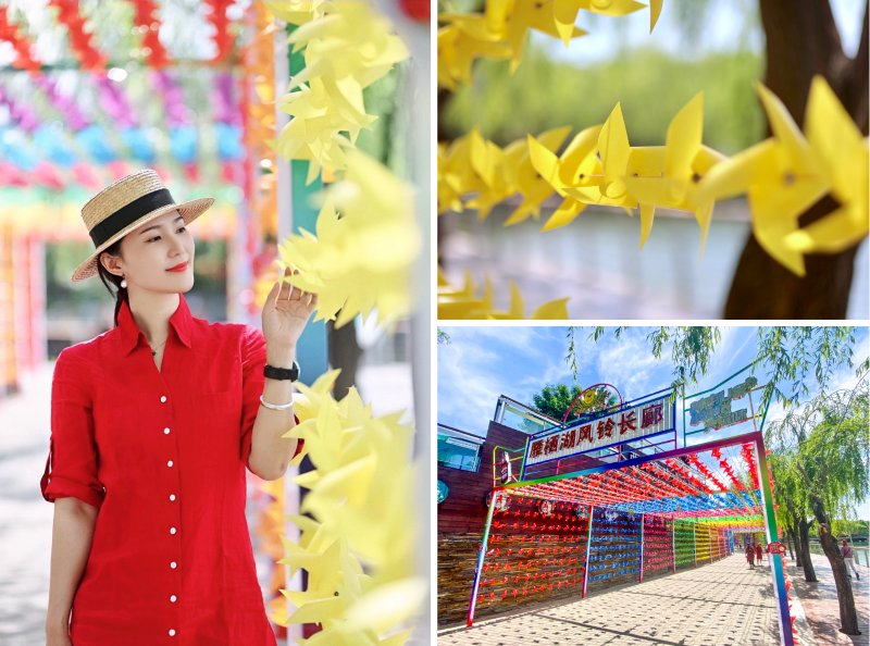A principios de verano, el lago de Jiangxi, el agua del lago es clara y verde, y los molinos de viento giran, y el paisaje está absolutamente más allá de su imaginación.
