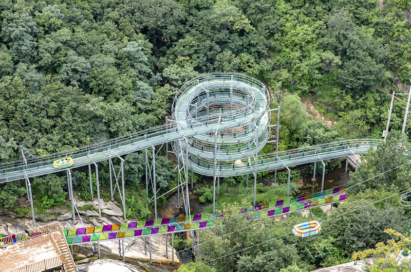 Después de gritar, sentirás que no has jugado lo suficiente. El tobogan de vidrio de más de 2500 metros de largo hace que la gente se sienta como si llegara al final rápidamente. Si no fuera por tanta gente en la cola, tendría que jugar de nuevo, disfrutar de la sensación de deslizarse libremente desde 100 metros de altura, esa emoción, esa tensión, esa liberación... Esa sensación de estar a la deriva es imposible en tiempos normales, y solo se puede experimentar al integrarse completamente en la naturaleza.