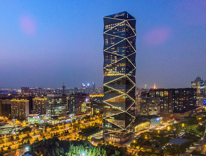 Con una marca hotelera de más de 100 años, el Nanjing Jin Au Fairmont Hotel fue diseñado y construido por el mundialmente famoso SOM, con la forma de una gran linterna china. El hotel dispone de 359 habitaciones y suites, cada una con vistas al río Yangtze y a la ciudad de Nanjing. Con cinco restaurantes y bares, los huéspedes pueden disfrutar de una variedad de opciones gastronómicas, incluido un restaurante de día completo en el piso 60 con vistas panorámicas de 360 grados a la ciudad. Otras instalaciones incluyen una marca Fairmont Spa, el Ulryu Creek Spa, gimnasio, piscina cubierta, 2.500 metros cuadrados de espacio flexible para reuniones y un gran salón de baile con capacidad para más de 1.000 invitados a la vez.