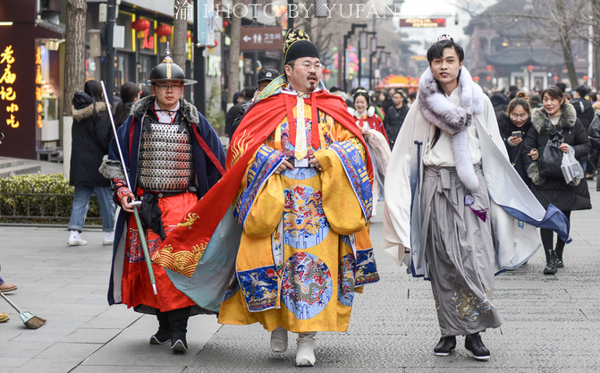 Este fenómeno de la moda Han es particularmente obvio en el cinturón escénico del río Fuzi Qiao en Nanjing. Sienten que usar trajes antiguos y visitar la antigua capital es más encantador. Los ladrillos azules verdes pesados, las murallas de la ciudad que se extienden y las torres espectaculares de la ciudad se hacen amigos de los magníficos trajes Han. Según una hermosa mujer vestida con trajes de palacio, su casa tiene cinco trajes antiguos. Disfruta de esta impresionante vida Hanfu juntos. A su lado, hay muchos hombres y mujeres jóvenes como ella, todo el mundo usa Hanfu como ropa ordinaria, no por un festival o actividad, sino por su propio placer, se ha convertido en una parte indispensable de su vida, y en la opinión de Yufan, este tipo de fiebre Hanfu también es una expresión concreta de confianza cultural.