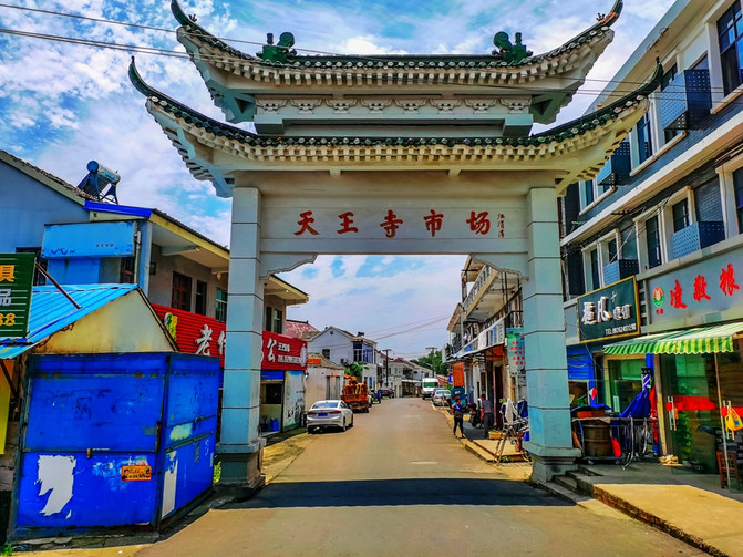 Los cinco grandes caracteres de "Mercado del Templo Tianwang" en la placa son las inscripciones de Jiang Weiqing, ex secretario del Comité Provincial del Partido de Jiangsu. Bajo el edificio de cartas es la entrada a la vieja calle, desde el edificio de cartas hasta el final, hay un puente antiguo a la esquina izquierda, otros básicamente no hay monumentos.