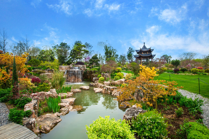 Al llegar al Jardín Sanye Menghua, vi el paisaje del jardín exquisitamente esculpido, esparcido. Begonia, magnolia, flores de cerezo, rosas, flores de primavera en el jardín. Aquí se reúne la esencia de los jardines famosos de 15 países de todo el mundo, cuidadosamente creado en un "jardín de Bucharest" de China.