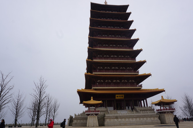De pie en la esquina norte de la Pagoda de Buda, el Palacio de Buda y la Pagoda del Templo de Hongjue están a poca distancia.