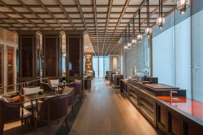 A través del primer piso del hotel para llegar al vestíbulo, tome el ascensor para llegar al vestíbulo aéreo del piso 38 del hotel, lo primero que se ve es el salón del vestíbulo, los muebles aquí destacan el lujo oculto de la estética china, al mismo tiempo que integra el cristal Bacala y las esculturas de mármol Clara. Las estanterías elevadas de un lado están llenas de obras de arte y libros chinos, separando el espacio y reduciendo el ruido. Los invitados no se molestan entre sí.