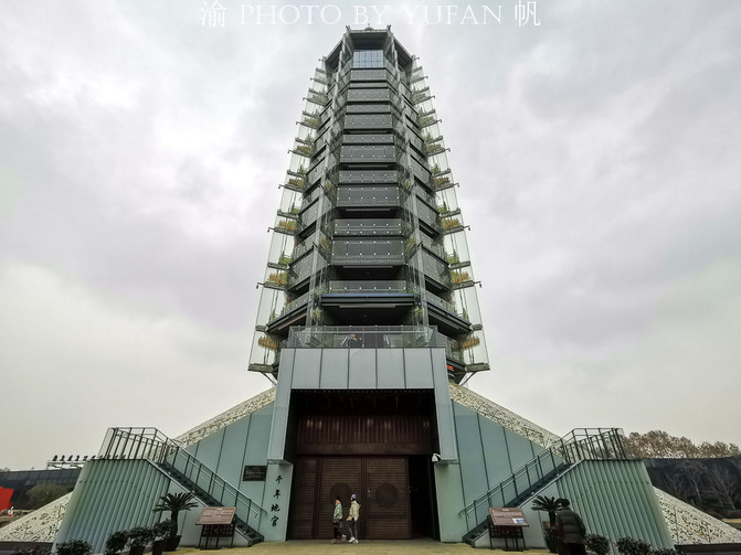 La razón por la que es conocida como la primera torre en el mundo, según Zhu Di, el antepasado de la dinastía Ming, es que la torre de vidrio del Templo Da Baoen tiene tres extremos, uno de los cuales es una estructura gigante y de forma especial, con un alto sol nublado. La torre de vidrio es una de las estructuras más altas de la antigua China documentadas con precisión. La torre es octogonal, con 9 pisos y una altura de 78,02 metros, que es equivalente a la altura de un edificio de 26 pisos. Erjie es un vidrio vidriado de cuerpo completo, caminando solo en la antigüedad y en la modernidad. El cuerpo principal de la torre de vidrio es de ladrillo, excepto por una "madera de tubo" en la parte superior de la torre, todo el edificio "no se aplica madera". Las Tres Juevas son largas y profundas noches, y las lámparas de Buda brillan para siempre. Cada vez que llega el atardecer, 144 lámparas de aceite brillantes como antorchas se encienden en la torre de vidrio, que permanecen durante toda la noche.